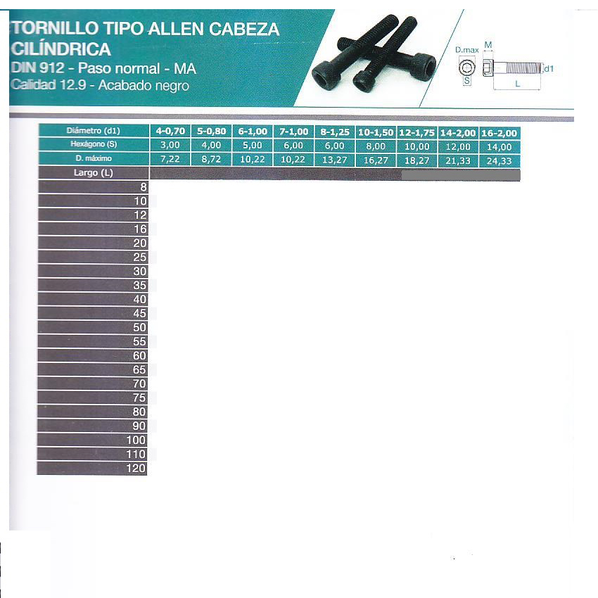 / Tipo allen cabeza cilindrica